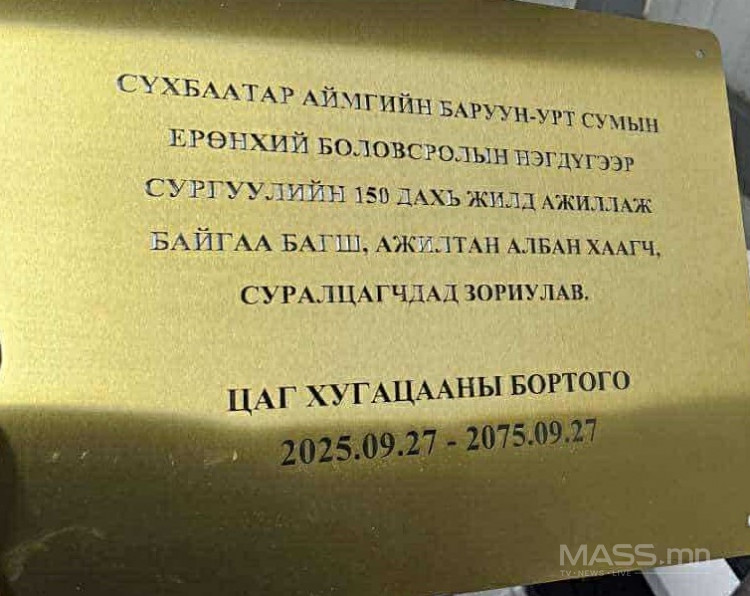 Сүхбаатар аймгийн Баруун Урт сумын Ерөнхий боловсролын 1 дүгээр сургуулийнхан түүхт 100 жилийн ойгоо энэ сарын 25-наас 27-ны өдрүүдэд тэмдэглэнэ. Энэ үеэр зохион байгуулагдах олон сонирхолтой арга хэмжээний нэг нь “Цаг хугацааны бортого”-ыг ирээдүй рүү буюу 2075 он руу илгээхээр битүүмжлэх ёслол юм.