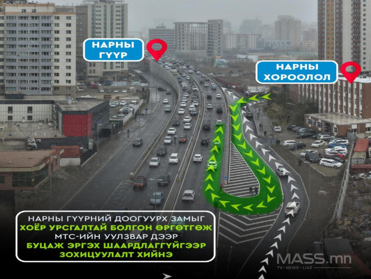 Нарны гүүрний зүүн талын нэг эгнээ замыг өргөтгөх ажил дууссан бөгөөд  маргааш буюу 10-р сарын 15-наас нээнэ. Үүнтэй холбоотойгоор “Нарны хороолол” талаас ирэх жолооч нар МТС-ийн уулзвараар буцаж эргэх шаардлагагүй шууд Нарны гүүрний зүүн талаар буцаж эргэх эргэлт хийн хотын төв рүү шууд орох боломжтой.