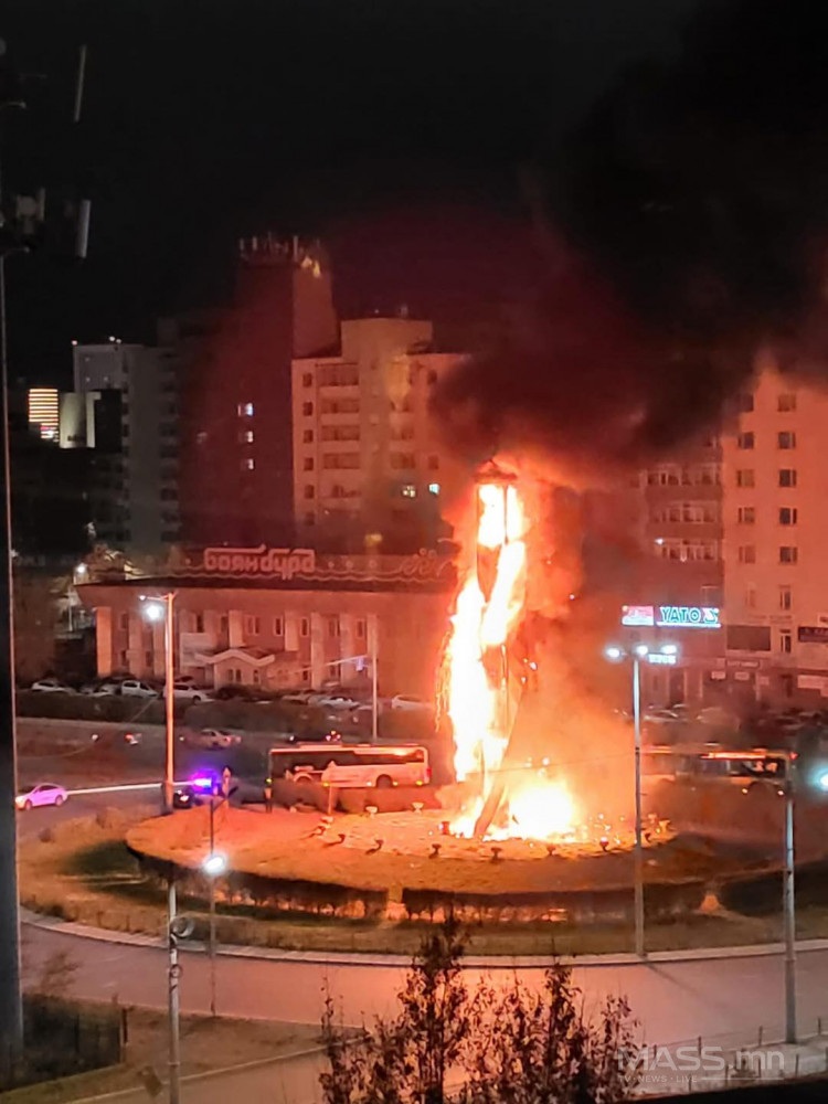 Цагдаагийн байгууллагад Чингэлтэй дүүргийн 9-р хороо “Баянбүрдийн тойргийн хөшөө шатаж байна” гэсэн мэдээллийг 10-р сарын 15-ны 05:43 цагт ирсэн.