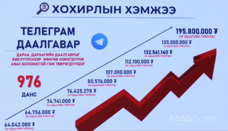 Энэ оны эхний 9 сарын байдлаар телеграммаар даалгавар биелүүлж залилуулсан гэх 767 гомдол, мэдээлэл бүртгэгдсэн. “Телеграммаар даалгавар биелүүлж мөнгөө өсгөөрэй”, “Тик токын бичлэг сурталчлан орлогоо нэмээрэй”, “Сугалаа сугалан азтан болоорой” гэх зарууд залилах гэмт хэргийн хохирогч болгох эрсдэлтэй гэдгийг анхаарна уу.