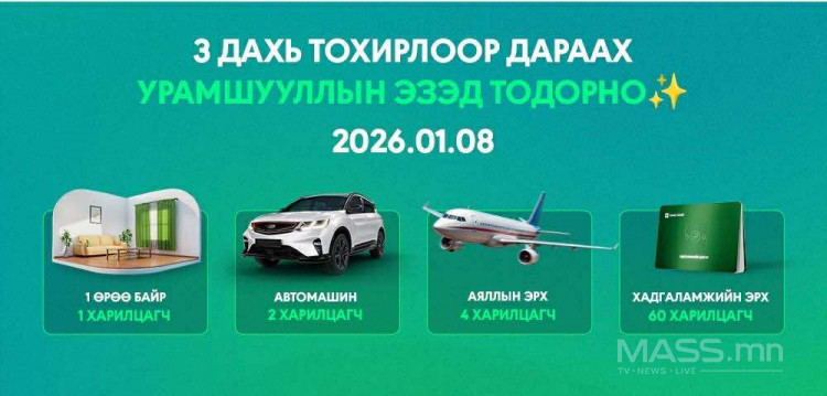 Нэг өрөө байр, Geely автомашин, гадаадад аялах аяллын эрх, хадгаламжийн эрхийн эздийг тодруулах 3 дахь тохирол 2026 оны 1-р сарын 8-ны өдөр болно.