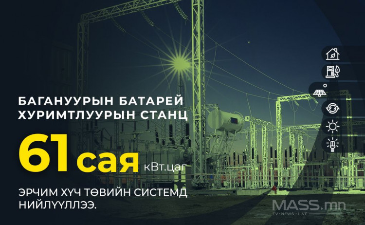 Нийслэлийн Багануур дүүргийн I хорооны нутаг дэвсгэрт “Багануур” цахилгаан түгээх дэд станцыг түшиглэн 50 МВт хүчин чадалтай батарей хуримтлуурын станцыг байгуулж, 2024 оны арванхоёрдугаар сарын 5-ны өдрөөс төвийн системд эрчим хүч нийлүүлж эхэлсэн. Өнөөдрийг хүртэл Багануурын батарей хуримтлуурын станц нийт 61054.7 сая кВт.цаг эрчим хүчийг төвийн бүсийн нэгдсэн системд нийлүүлээд байна.