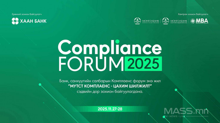 ХААН Банк, Монголбанк, Санхүүгийн мэдээллийн алба болон Монголын Банкны Холбоо, Санхүүгийн зохицуулах хорооноос хамтран “МУТСТ Комплаенс-цахим шилжилт” сэдэвт комплаенсийн форумыг 2025 оны 11-р сарын 27-28-ны өдрүүдэд зохион байгуулах гэж байна. 2011 оноос эхлэн зохион байгуулж буй энэхүү форумаар Монгол Улс дахь мөнгө угаах, терроризмыг санхүүжүүлэхтэй тэмцэх (МУТСТ) хууль эрхзүй, хяналт хэрэгжилтийн тогтолцооны тухай оролцогч бүх талуудын дунд хэлэлцүүлэг өрнүүлэн, цахим шилжилт, техник технологийн хөгжилтэй нийцүүлэн, МУТСТ хяналтын тогтолцоог сайжруулах боломж, шийдлийг ярилцах юм.