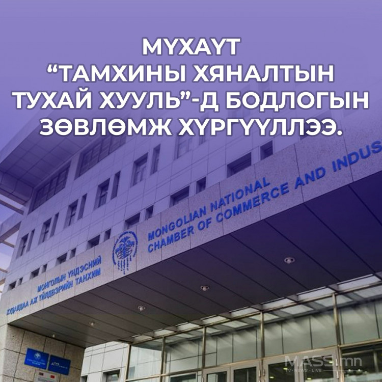 Монголын Үндэсний Худалдаа Аж Үйлдвэрийн Танхим (МҮХАҮТ) Тамхины хяналтын тухай хуульд нэмэлт, өөрчлөлт оруулах төсөлтэй холбоотойгоор бизнесийн салбарын оролцоо, олон талын саналыг нэгтгэн хууль тогтоогчдод хүргүүллээ. Энэхүү санал нь хуулийн зорилтыг дэмжихийн зэрэгцээ бодит эдийн засгийн нөхцөлд нийцсэн, тогтвортой, хэрэгжих боломжтой зохицуулалт бүрдэхэд чухал хувь нэмэр оруулах зорилготой гэжээ.