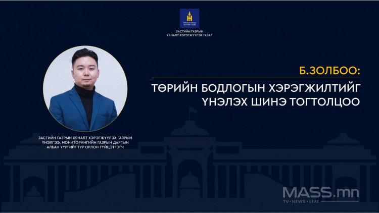 Засгийн газрын Хяналт хэрэгжүүлэх газрын Үнэлгээ, мониторингийн газрын даргын албан үүргийг түр орлон гүйцэтгэгч Б.Золбоотой төрийн бодлогын хэрэгжилтийг хянан үнэлэх шинэ тогтолцоо, 2025 оны шинэчлэл, олон улсын хамтын ажиллагаа болон цаашдын чиг хандлагын талаар ярилцлаа.