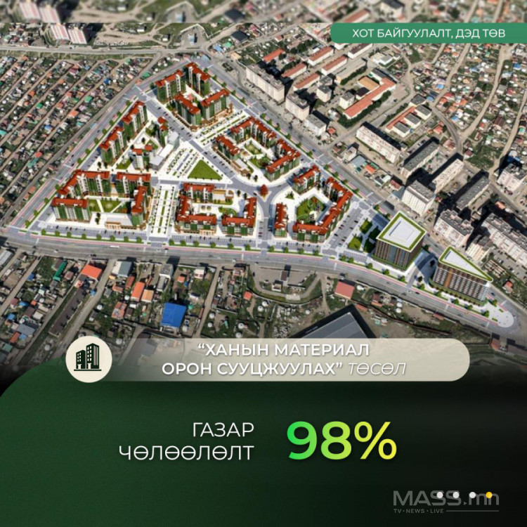 Улаанбаатар хотын агаар, хөрсний бохирдол болон авто замын түгжрэлийг бууруулж, иргэдийн эрүүл аюулгүй орчинд амьдрах нөхцөлийг бүрдүүлэхээр гэр хорооллыг орон сууцжуулах төслийг үе шаттай хэрэгжүүлж буй. Энэ хүрээнд Сонгинохайрхан дүүргийн 5 дугаар хороо, Ханын материал орчмын 12.6 га талбайд нийт 3000 айлын орон сууцыг барих ажлыг өнгөрсөн аравдугаар сарын 24-нөөс эхлүүлсэн.
