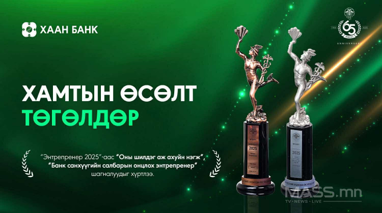Монгол Улсын нийгэм, эдийн засгийн хөгжилд бодит хувь нэмэр оруулж буй шилдэг аж ахуйн нэгжийг тодруулдаг “Энтрепренер-2025” шагнал гардуулах ёслолын үеэр ХААН Банкийг “Оны онцлох аж ахуйн нэгж”, мөн “Банкны салбарын онцлох Энтрепренер”-ээр шалгаруулж, мөнгө, хүрэл Меркури цом гардууллаа.