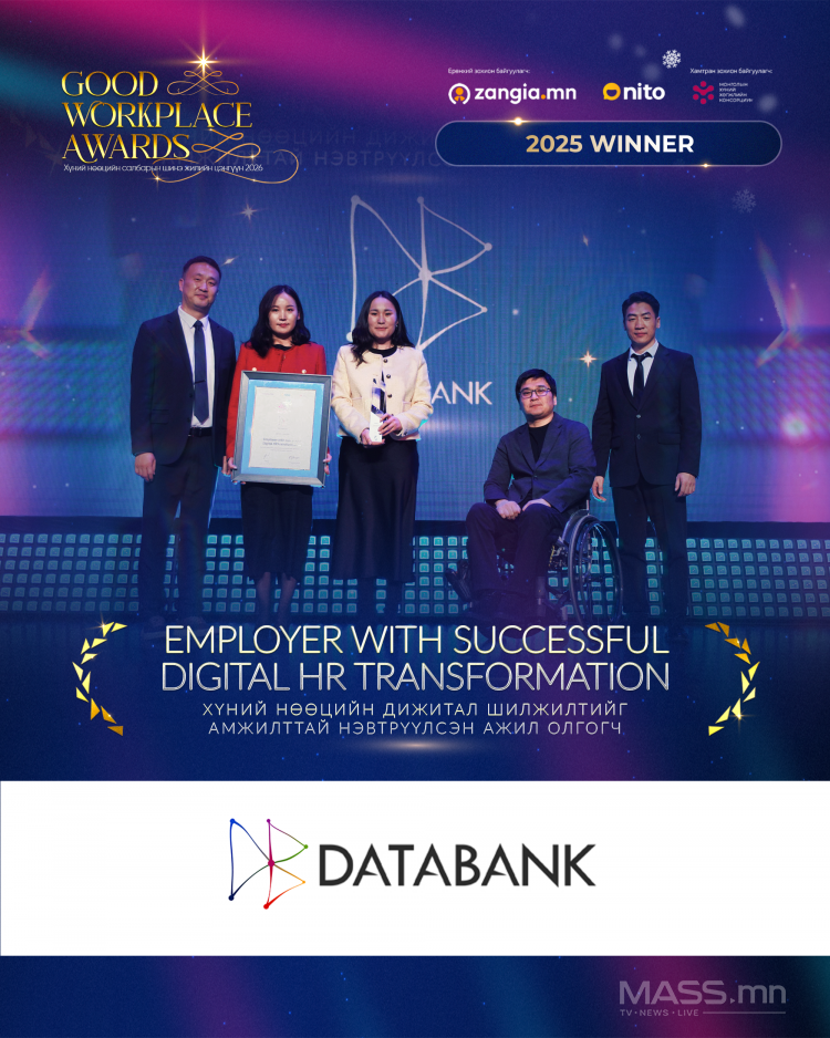 -𝐄𝐦𝐩𝐥𝐨𝐲𝐞𝐫 𝐰𝐢𝐭𝐡 𝐒𝐮𝐜𝐜𝐞𝐬𝐬𝐟𝐮𝐥 𝐃𝐢𝐠𝐢𝐭𝐚𝐥 𝐇𝐑 𝐓𝐫𝐚𝐧𝐬𝐟𝐨𝐫𝐦𝐚𝐭𝐢𝐨𝐧 - Хүний нөөцийн дижитал шилжилтийг амжилттай нэвтрүүлсэн шилдэг ажил олгогчоор Дата бэйнк ХХК