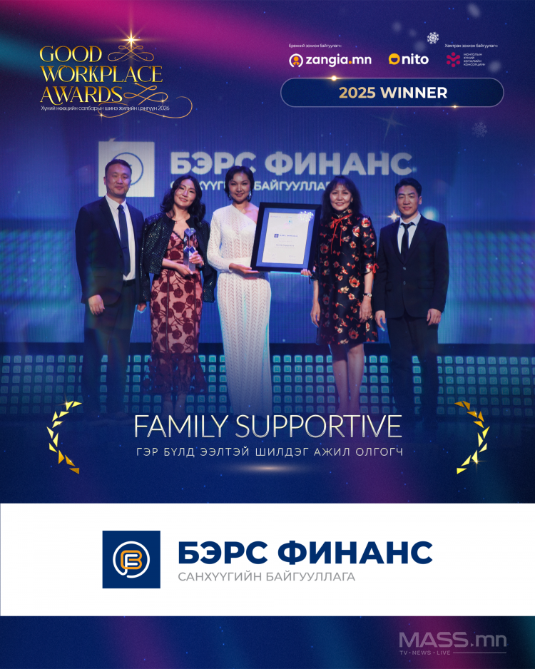 -𝐅𝐚𝐦𝐢𝐥𝐲 𝐒𝐮𝐩𝐩𝐨𝐫𝐭𝐢𝐯𝐞 - Гэр бүлд ээлтэй шилдэг ажил олгогчоор Бэрс Финанс ББСБ ХХК