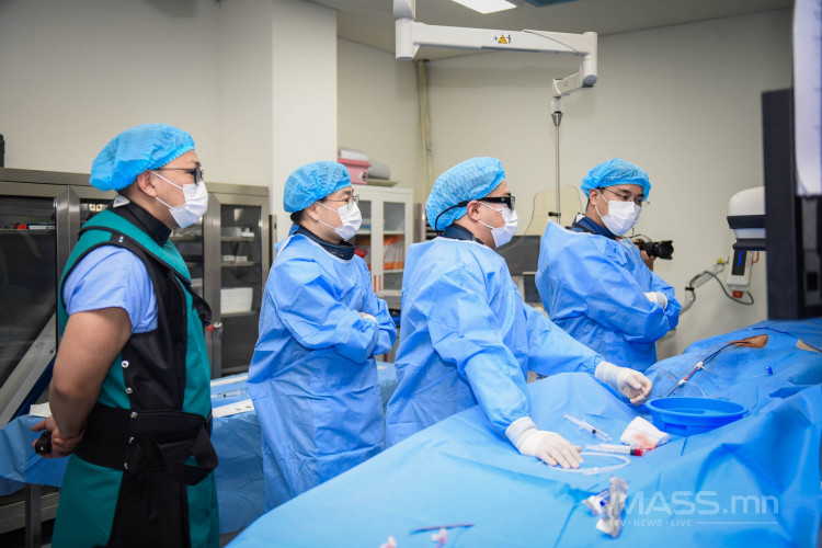 УХТЭ, Зүрх Судас Судлалын Тасаг, Шигдээсийн нэгжид өнгөрсөн сарын 29-30-ны өдрүүдэд БНСУ, Улсан Их Сургуулийн Эмнэлгийн зүрхний судсан дотуурх мэс заслын эмч, профессор PARK GYUNGMIN, зүрхний дүрс оношилгооны эмч, профессор ANN SOEHEE, сувилагч, техникчээс бүрдсэн багийг урин хамтарч ажиллалаа. Хамтын ажиллагааны хүрээнд “Зүрхний төрөлхийн гажгийн судсан дотуурх мэс засал , ажилбарын үеийн улаан хоолойн зүрхний хэт авиан шинжилгээ” сэдэвт сургалтыг амжилттай зохион байгуулав. Сургалтын хүрээнд БНСУ-ын багийн зөвлөгөө, хяналтан дор хүнд хэлбэрийн титэм судасны нарийслийн үеийн ТСДЭ, зүрхний төрөлхийн гажиг судсан дотуурх аргаар засах хагалгааг УХТЭ-ийн эмч нар амжилттай хийж гүйцэтгэлээ.