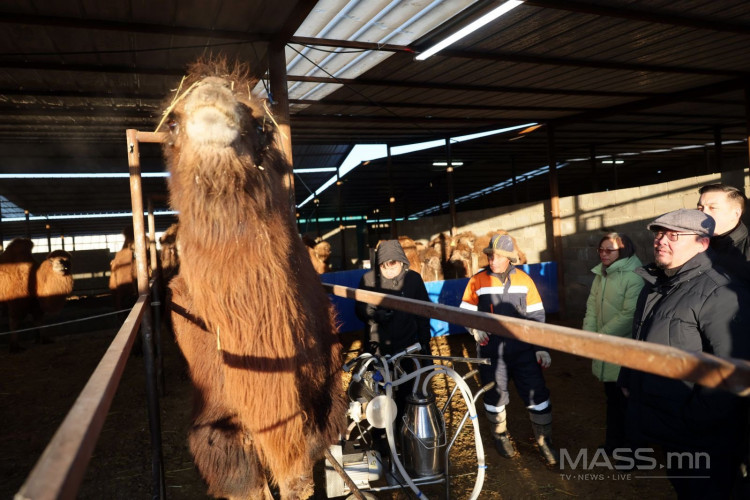 Нийт 225 тэмээтэй. Үүний 160 нь ингэ. Өнөөдрийн байдлаар 70 ингэ сааж, өдөрт 140-150 литр сүү авч байна. Нэг ингэнээс 2.5 литр сүү буюу бэлчээрийн тэмээнээс хоёр дахин их сүү авч байгаа юм байна. Зуны улиралд 4 хүртэл литр сүү авдаг гэж фермийн удирдлагууд танилцуулав.