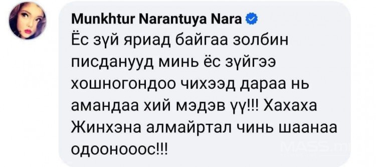 Үүнтэй ижил жишээ татахад, АН-ын бүлгийн дарга Ц.Мөнхтуяаг сошиал орчинд ёс бус үг хэллэг ашигласан хэмээн ёс зүйн хорооноос түүнд арга хэмжээ авсан байдаг. Гэвч УИХ-ын гишүүн М.Нарантуяа-Нарад хариуцлага тооцсонгүй. Харин иргэдийн зүгээс түүнд хариуцлага тооцохыг шаардаж, төрийн түшээ хүнээс гарамгүй үйлдэл гаргадагт бухимдлаа илэрхийлсээр байна.