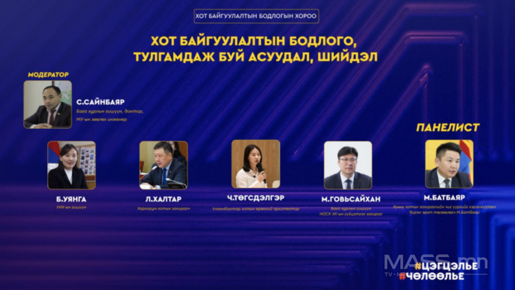 Хот байгуулалтын бодлого тулгамдаж буй асуудал шийдэл нэртэй хэлэлцүүлгийн панелист НОСК-ийн гүйцэтгэх захирал М.Говьсайхан "Орон сууцны нийлүүлэлтэд мөн томоохон тулгарч буй асуудал нь дэд бүцтийн хүртээмж байна. Улаанбаатар хотын инженерийн дэд бүтэцтэй бүсүүдэд л нягтаршил маш их нэмэгдэж байна. Иймд цахилгаан, дулааны дэд бүтцийг тархмал эх үүсвэрээр шийдэх, олон улсад түгээмэл болоод буй сэргээгдэх эрчим хүчээр шийдэх зэрэг юм. Энэ бол айл өрх бүр "Хэрэглэгч"-ээс "Үйлдвэрлэгч" болох шилжилт юм. Ингэснээр заавал хотын төвийн дулаан, цахилгааны шугам бараадах албагүй болж төвлөрөл саарна. Энэхүү шилжилтэд үйлдвэрлэсэн цахилгааныг зарах буй “net metering” тогтолцоог төгөлдөршүүлэх, ард иргэдэд сурталчлан таниулах шаардлагатай байна. Мөн сэргээгдэх эрчим хүч ашигласан ногоон орон сууцнууд дээр carbon credit тооцох, тухайн carbon credit-ийг “Агаарын бохирдлын эсрэг сан” зэрэг сангаар дамжуулж худалдан авч өрхийн орлогод дэмжлэг үзүүлэх, цаашид carbon credit-ийг олон улсад зарах биш монголдоо худалдаж авах замаар ногоон орон сууцны хөтөлбөрийг дэмжих шаардлагатай байна.