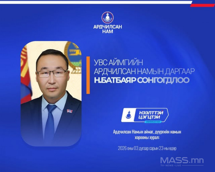 - Увс аймгийн Ардчилсан Намын даргаар урьдчилсан байдлаар Н.Батбаяр сонгогдлоо.