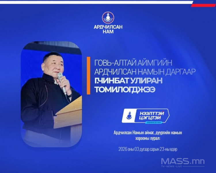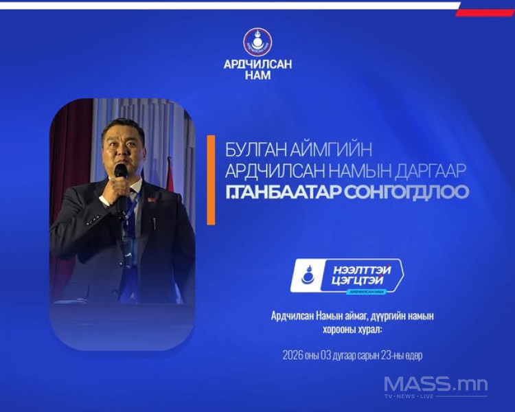 - Архангай аймгийн Ардчилсан Намын даргаар урьдчилсан байдлаар УИХ-ын гишүүн П.Мөнхтулга сонгогдлоо.