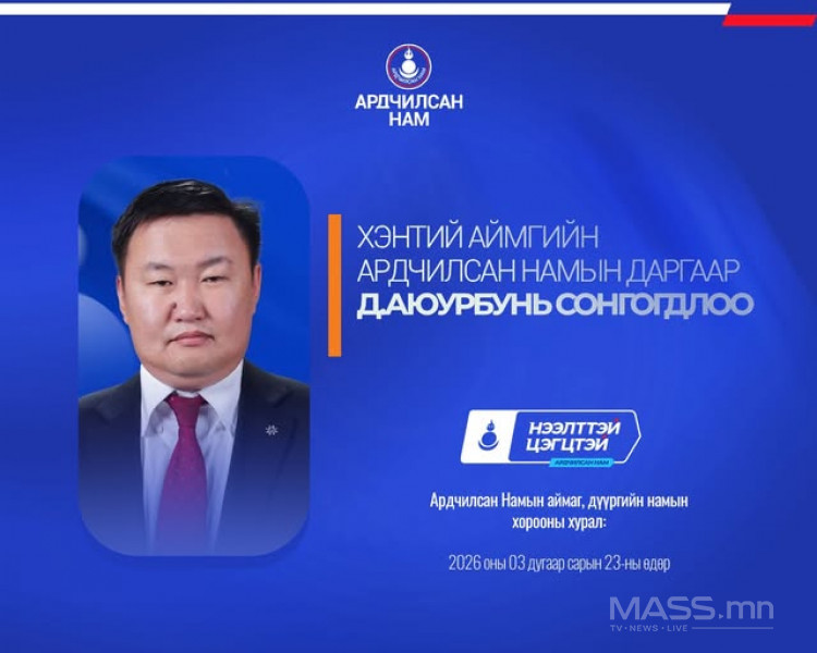 - Хэнтий аймгийн Ардчилсан Намын даргаар урьдчилсан байдлаар Д.Аюурбунь сонгогдлоо.