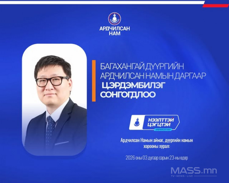 - Багахангай дүүргийн Ардчилсан Намын даргаар урьдчилсан байдлаар Ц.Эрдэмбилэг сонгогдлоо.