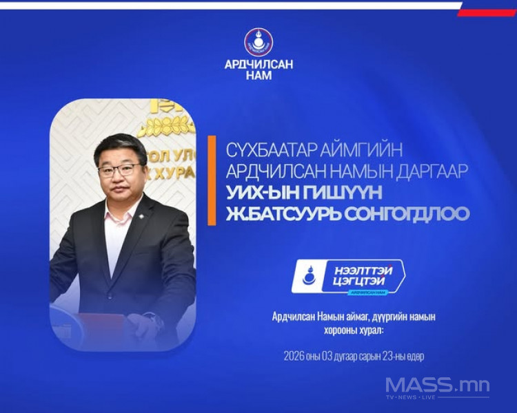 - Сүхбаатар аймгийн Ардчилсан Намын даргаар урьдчилсан байдлаар УИХ-ын гишүүн Ж.Батсуурь сонгогдлоо.