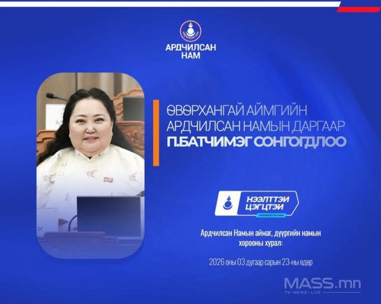 - Өвөрхангай аймгийн Ардчилсан Намын даргаар УИХ-ын гишүүн П.Батчимэг сонгогдлоо.