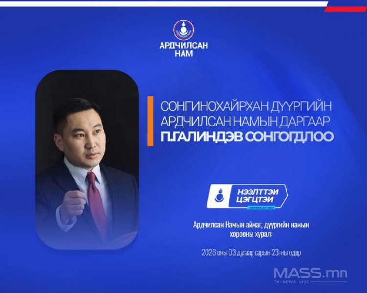 - Сонгинохайрхан дүүргийн Ардчилсан Намын даргаар урьдчилсан байдлаар П.Галиндэв сонгогдлоо.