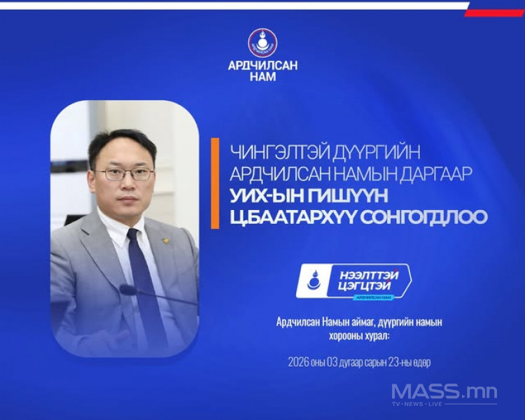 - Чингэлтэй дүүргийн Ардчилсан Намын даргаар урьдчилсан байдлаар УИХ-ын гишүүн Ц.Баатархүү сонгогдлоо.