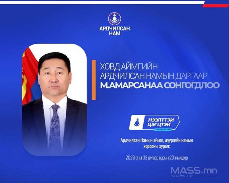 - Ховд аймгийн Ардчилсан Намын даргаар урьдчилсан байдлаар М.Амарсанаа сонгогдлоо.
