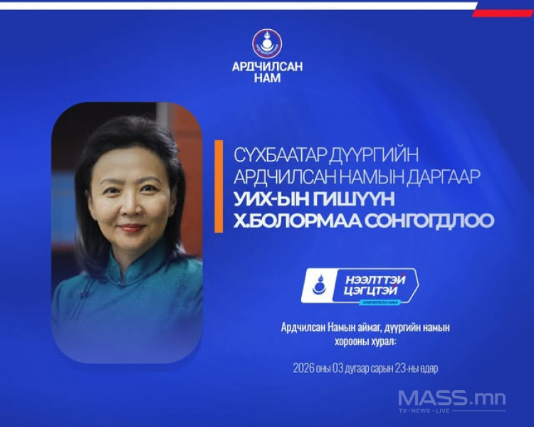 - Сүхбаатар дүүргийн Ардчилсан Намын даргаар урьдчилсан байдлаар УИХ-ын гишүүн Х.Болормаа сонгогдлоо.