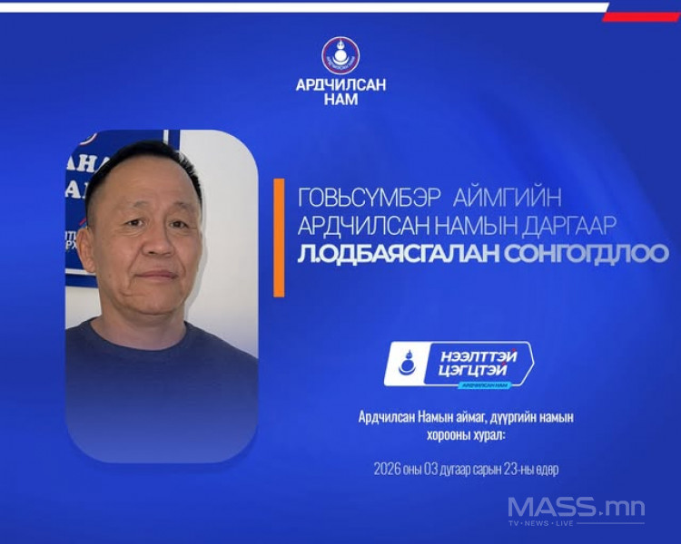 - Говьсүмбэр аймгийн Ардчилсан Намын даргаар урьдчилсан байдлаар Л.Одбаясгалан сонгогдлоо.