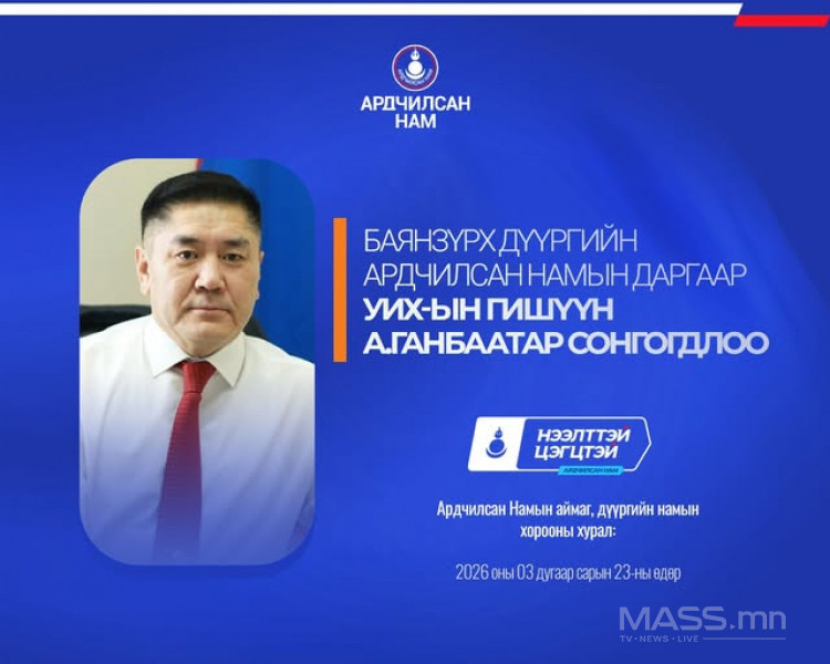 - Баянзүрх дүүргийн Ардчилсан Намын даргаар урьдчилсан байдлаар УИХ-ын гишүүн А.Ганбаатар сонгогдлоо.