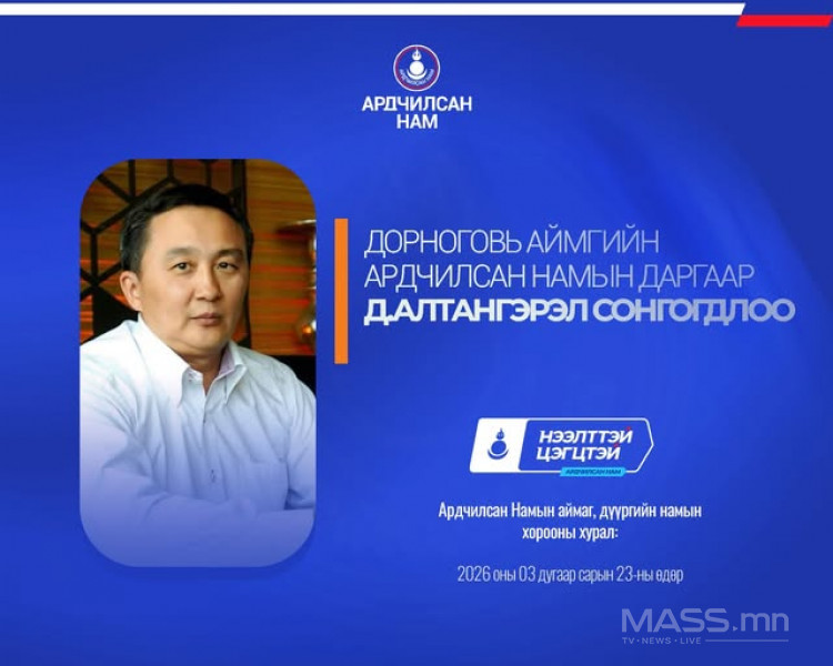- Дорноговь аймгийн Ардчилсан Намын даргаар урьдчилсан байдлаар Д.Алтангэрэл сонгогдлоо.