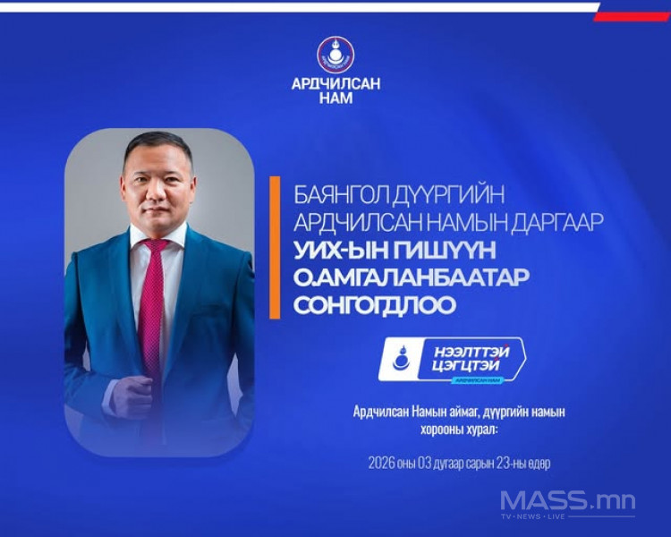 - Баянгол дүүргийн Ардчилсан Намын даргаар урьдчилсан байдлаар УИХ-ын гишүүн О.Амгаланбаатар сонгогдлоо.