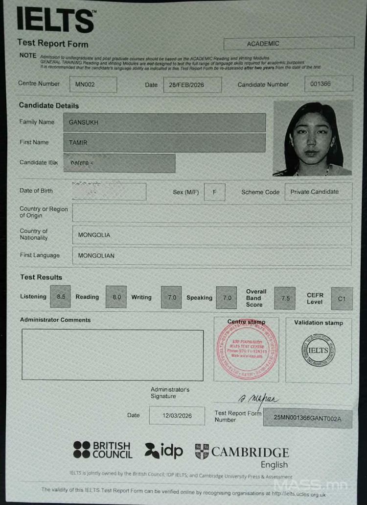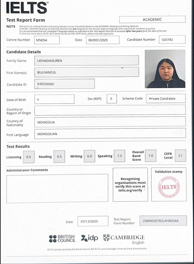 -IELTS-ийн оноо амласан хөтөлбөр (Гадаадын их сургуульд суралцахыг зорьж буй залуус, богино хугацаанд өндөр оноо авах тусгай сургалт)