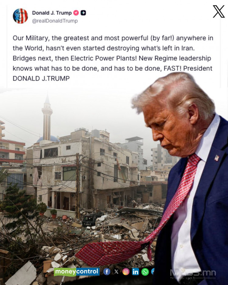 АНУ-ын ерөнxийлөгч, тус улсын зэвсэгт xүчний ерөнxийлөгч Дональд Трамп өнөөдөр буюу 2026.04.03-ны өдөр Ираны дэд бүтцийн байгууламжуудыг бөмбөгдөнө гэдгээ өөрийн X (xуучнаар Твиттер) xуудсаараа дамжуулж мэдэгдсэн байна.