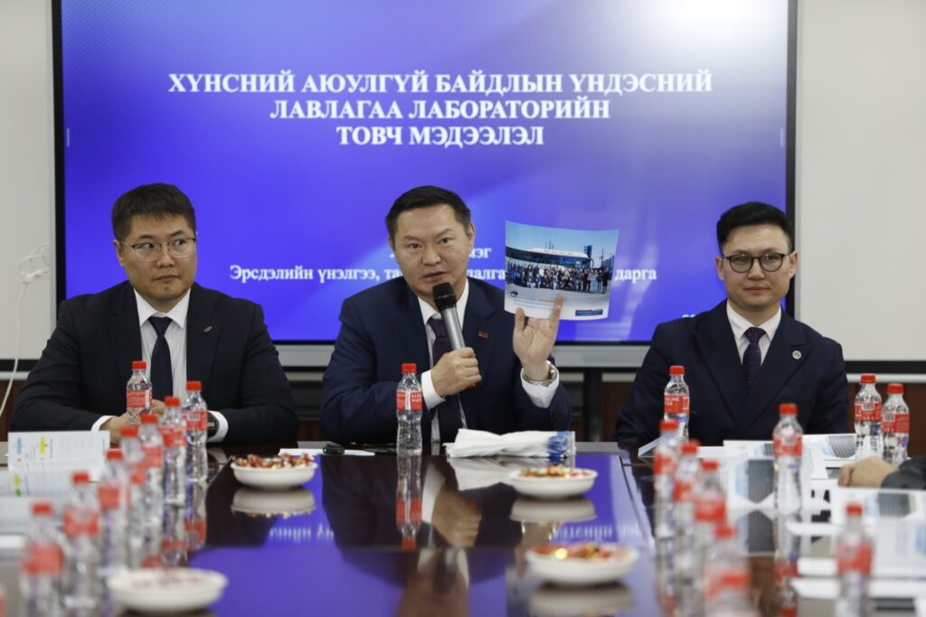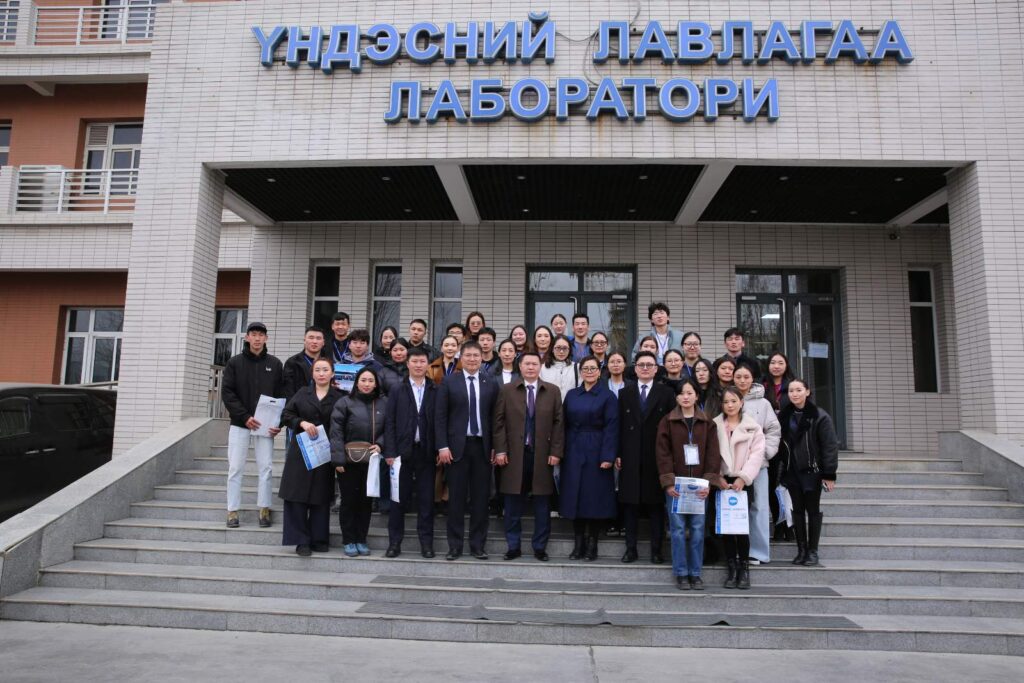 Оюутнууд лабораторийн бүтэц, зохион байгуулалт, шинжилгээний үндсэн чиглэлүүдтэй танилцахын зэрэгцээ орчин үеийн өндөр нарийвчлалтай тоног төхөөрөмжийн ажиллагаа, дээж авах, боловсруулах, шинжлэх үе шат, чанарын хяналтын дотоод болон гадаад тогтолцооны талаар мэргэжилтнүүдийн дэлгэрэнгүй тайлбар, зөвлөгөөг сонслоо.