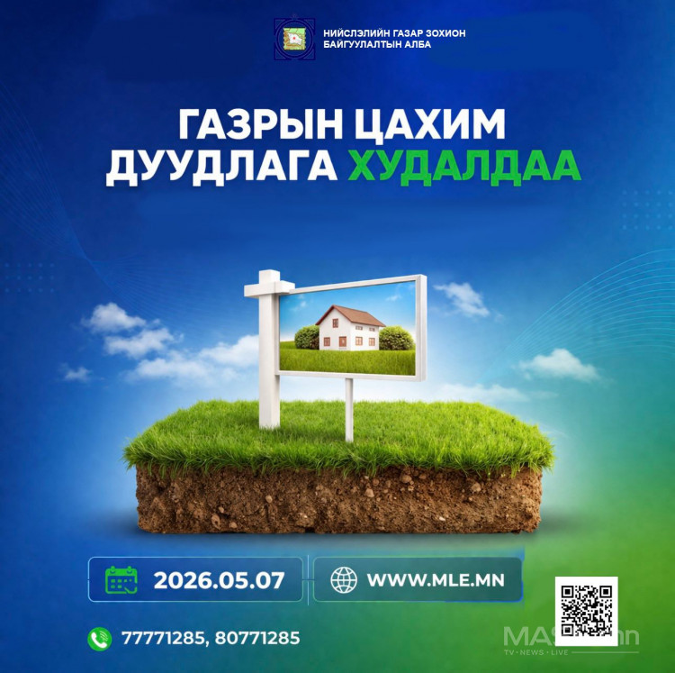 Нийслэлийн Засаг даргын 2026 оны А/213 дугаар захирамжийн дагуу Газар эзэмшүүлэх, ашиглуулах эрхийн цахим дуудлага худалдааг 2026 оны 05 дугаар сарын 07-ны өдөр 09:00 цагт Газрын биржийн цахим систем /www.mle.mn/-ээр зохион байгуулна.