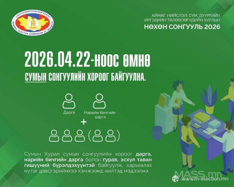 Аймаг, нийслэл, сум, дүүргийн иргэдийн Төлөөлөгчдийн Хурлын 2026 оны нөхөн сонгууль зургаадугаар сарын 21-ний өдөр болно.