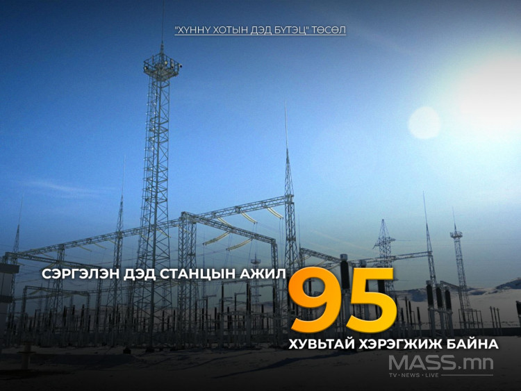 220/110-ын КВт-ын хүчин чадалтай Сэргэлэн дэд станцын явц 95 хувь;