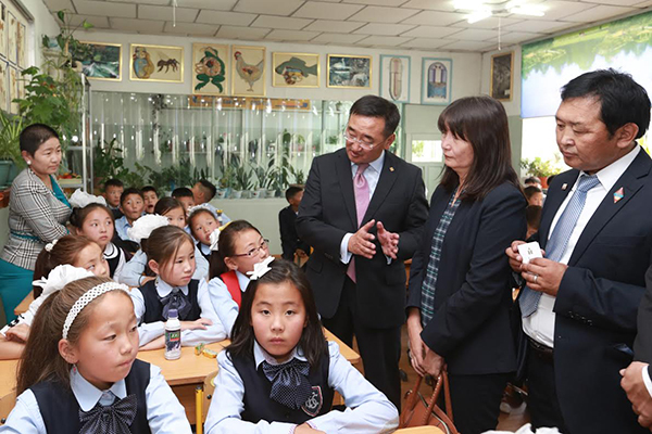 БОНХАЖ-ын сайдын албан үүргийг хавсран гүйцэтгэгч Л.Пүрэвсүрэн эрдмийн баярын нээлтийг тохиолдуулан Сүхбаатар дүүргийн 18 дугаар хороонд байрлах 166 дугаар цэцэрлэг, мөн хорооны Улсын тэргүүний 58 дугаар сургуулийн үйл ажиллагаатай танилцан, хүүхэд, багш нартай байгаль эх дэлхийгээ хайрлахуйн сэдвээр ярилцаж, экологийн боловсролд нь дусал нэмэрлэж ном бэлэглэлээ. Нийслэлийн Сүхбаатар дүүргийн Улсын тэргүүний 58 дугаар сургуулийн хувьд 2011 онд “Эко сургууль” батламж авчээ. Эко сургуулийн өнгө төрхөөрөө цаашид жишиг болж ажиллахаар төлөвлөж байгааг нь сайд сайшаав. Тус сургуулийн тавдугаар ангийн сурагчидтай уулзах үеэрээ “Дэлхий дээр долоон тэрбум хүн амьдардаг. Эдгээр 7 тэрбум хүний нэгээхэн хэсэг болсон монголчууд бид 3 саяулаа. Хүмүүс бид өөрсдийн амьдралын хэрэгцээнд зориулж маш олон зүйл бүтээдэг. Гэхдээ тэр бүхэн эргээд бидний амьсгалах агаар, уух ус, амьдрах эрүүл орчныг бохирдуулж, доройтуулж байгааг сүүлийн үед маш ихээр ярих болсон. Зүгээр нэг яриад зогсохгүй байгаль дэлхийгээ хайрлах үзлийг түгээн дэлгэрүүлж, бодит үйлдлээр харуулж байж бид ирээдүй үедээ амьдрах орчныг нь үлдээж чадна. Ялангуяа бидний хойч ирээдүй болсон хүүхдүүд та бүхэн үүнийг хэвшүүлж сурах хэрэгтэй” хэмээн сайд захив. Мөн монголчууд нүүдэллэн амьдарч ирэхдээ зөвхөн экологийн цэвэр бүтээгдэхүүн хэрэглэж, байгальдаа ээлтэй амьдарч ирсэн. Гэтэл орчин үед хэрэглээ өсөхийн хэрээр наад зах нь сав, баглаа боодлын хаягдлын асуудал үүссэн. Хаягдлыг дахин боловсруулж хэрэглэхийн тулд хог хаягдлаа ангилан ялгаж хаяж сурах хэрэгтэй. Хүүхдүүд та нар багаасаа ийм хэвшилд сурч, эцэг эх, бусад томчуудад бас зааж хэлж байх хэрэгтэй хэмээн сайд зөвлөлөө.