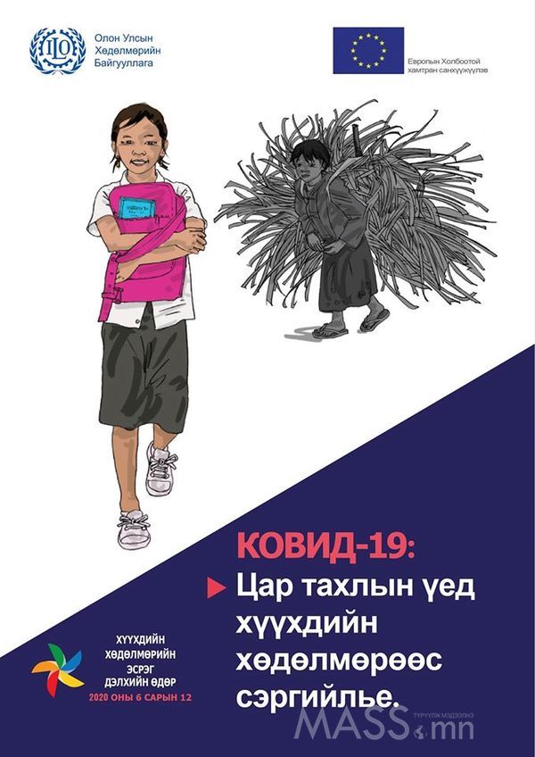 Дэлхий дахинд КОВИД-19 цар тахал гарсан энэ үед Олон улсын хөдөлмөрийн байгууллагаас энэхүү хямралыг даван туулахын тулд “ Ковид 19 цар тахлын үед хүүхдийн хөдөлмөрөөс урьдчилан сэргийлье” хэмээн уриалж байна.