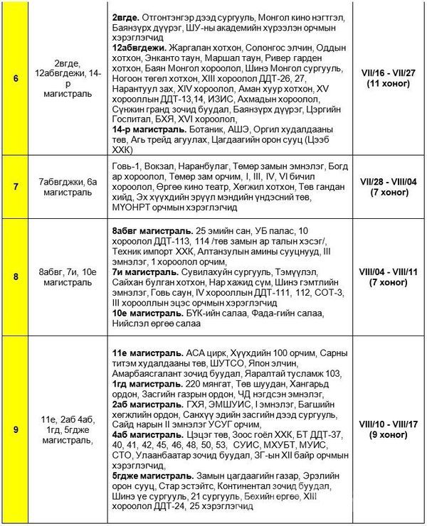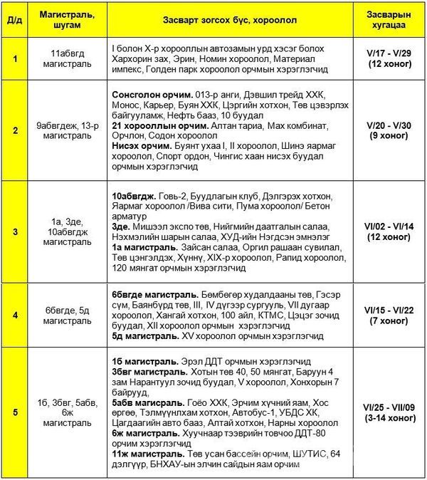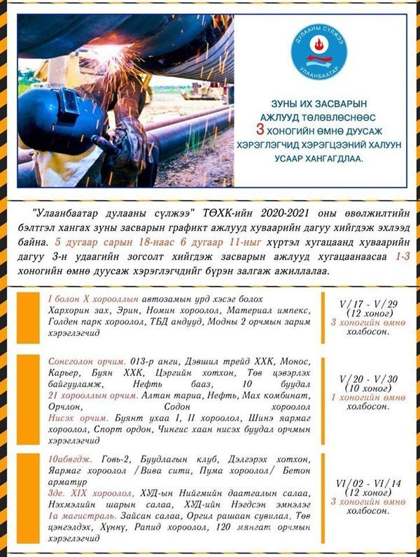 Дулааны шугамд хийгдэх ЗУНЫ засварын хуваарь: