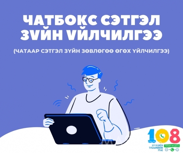 Хүүхдийн тусламжийн 108 утасны үйлчилгээний төв, чатбокс үйлчилгээ үзүүлдэг мэргэжлийн сэтгэл зүйчдээс 24 цагийн турш чатаар зөвлөгөө авах боломжтой юм. Хүүхдийн тусламжийн 108 утасны Чатбокс нь дараах үйлчилгээг үзүүлдэг. Үүнд: