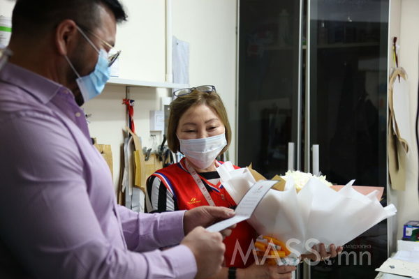 Монлайныг Үүсгэн байгуулснаас хойш түүний баруун гар нь болж ажилласан Отгоо эгчдээ ажилч хичээнгүй, ажилдаа сэтгэл зүрхээ шингээн ажилладаг энэхүү эрхэм чанарыг мянга түмэн хувилах юмсан гэсэн урмын үгтэйгээр цэцгийн баглаагаа бэлэглэлээ.