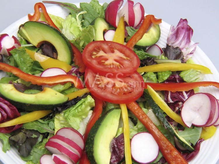 З. Бий болсон салатан дээр агшаасан будаа нэмж, сайтар хутгаад ширээнд олгоно.