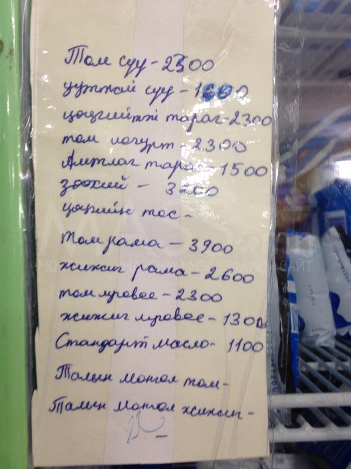 Сүүний үйлдвэр: Малчид сүүний үйлдвэрийн машинд сүүгээ 500 төгрөгөөр тушааж байгаа бол Улаанбаатар хот руу хүргэж, ченжүүдэд өгөхдөө үүнээс арай илүү үнэ хүргэдэг (ойролцоогоор 700 төгрөг) гэж байлаа. Ченжүүд 900-1200 төгрөгөөр иргэдэд худалдаалж байгаа аж. Харин сүүг 500-700 төгрөгөөр авдаг үйлдвэрүүдийн төлөөлөл болгон Хүнсчдийн холбооны удирдах зөвлөлийн гишүүн, “Сүүн сондор” ХХК-ийн захирал Э.Болормаагаас үнийн талаар тодрууллаа.